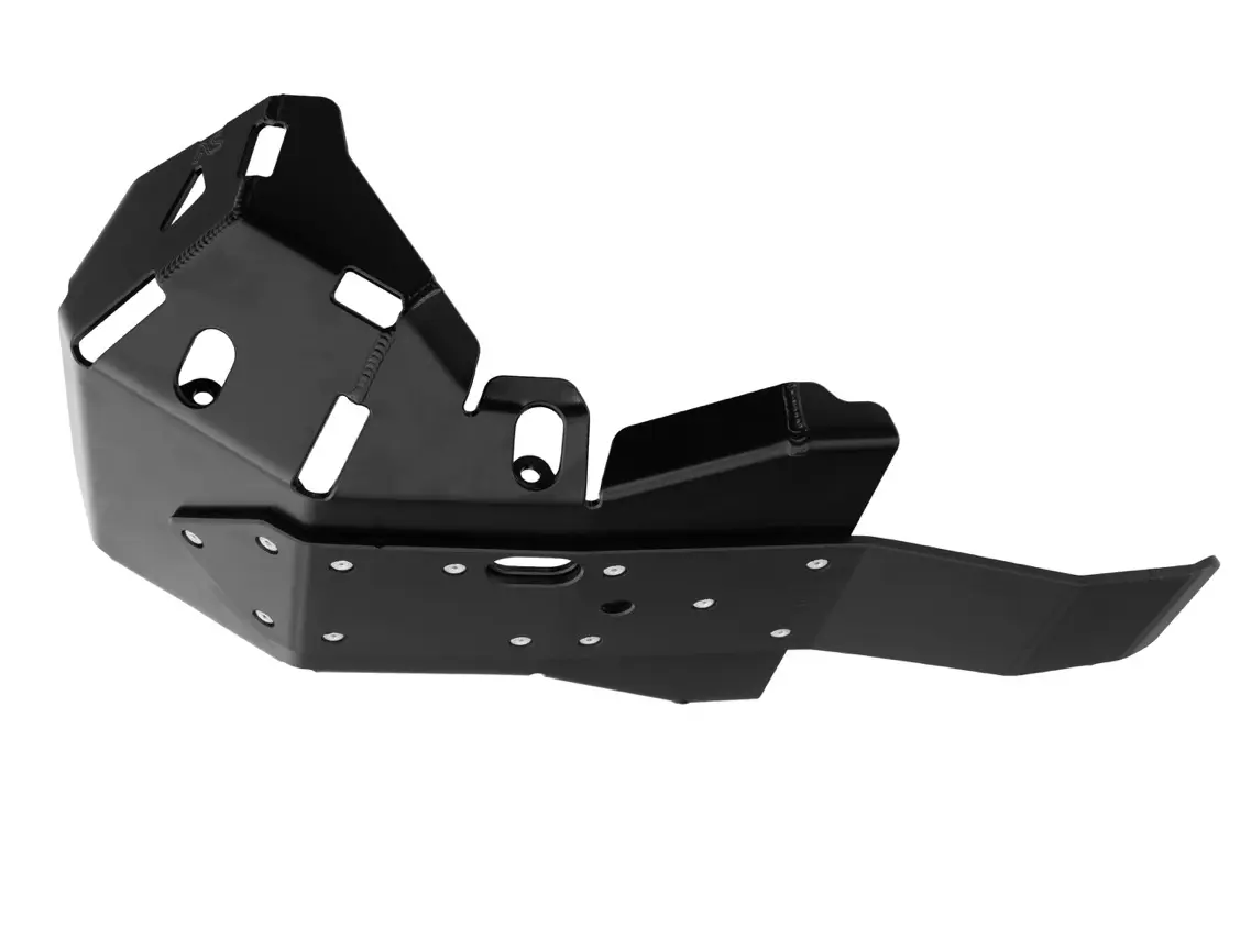 A rugged 4mm thick Aluminium Bashplate / Skidplate for your Suzuki DR-Z4S. Designed to protect your engine and its many emission regulations 'extras' from the most intense of adventures. Includes HDPE slide rails. Access hole to sump plug allows oil change without bashplate removal.