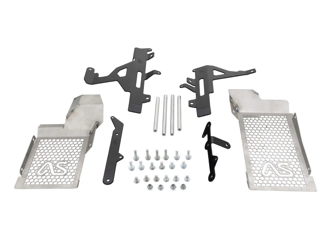 Aluminium Radiator Brace to protect your Suzuki DR-4ZS motorcycle cooling capability in the most extreme environments. Prevents crush damage from lateral forces.